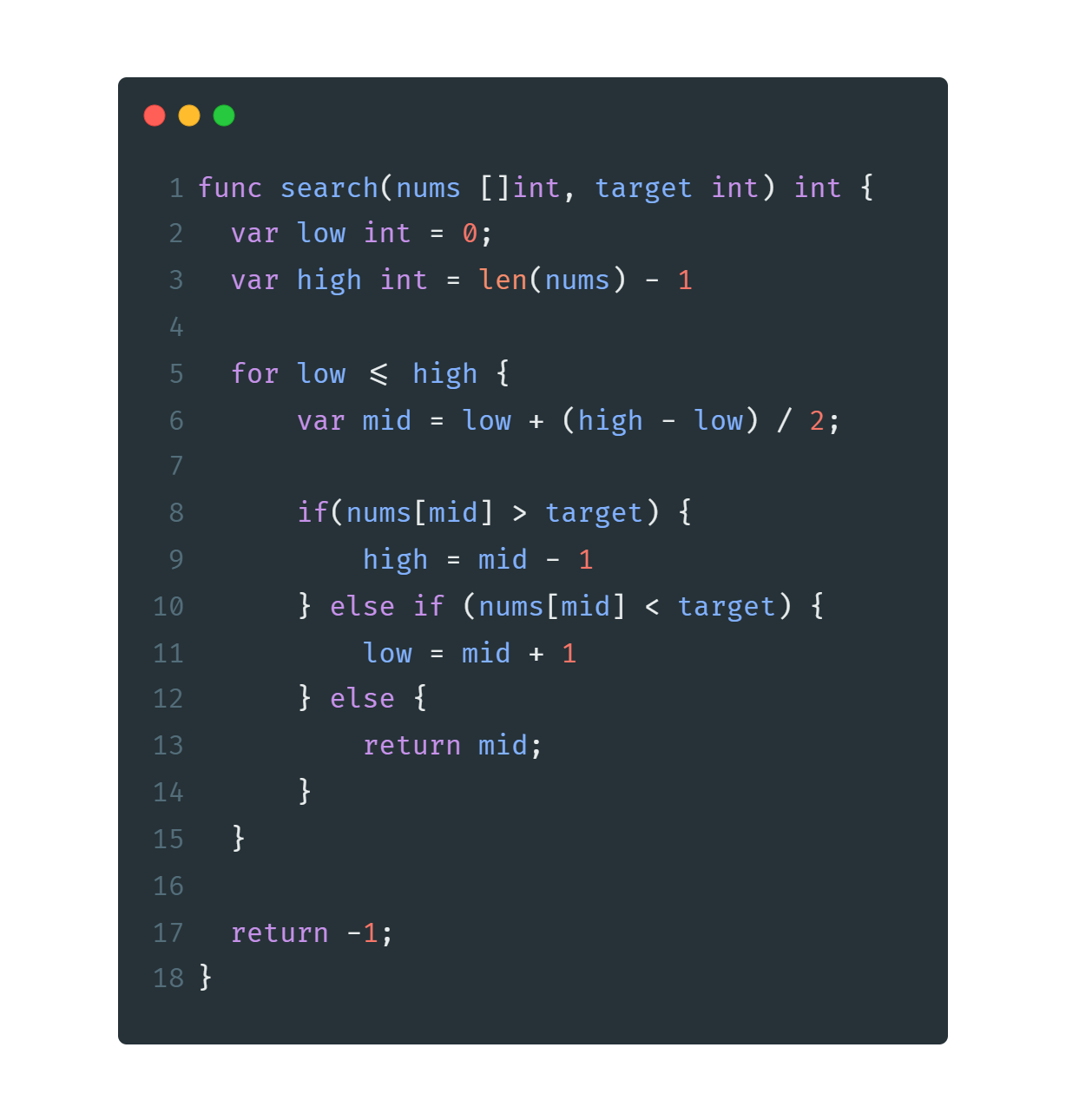 Algorithm that find a specific value in a sorted array. In Big O notation, the time complexity is O(log n).